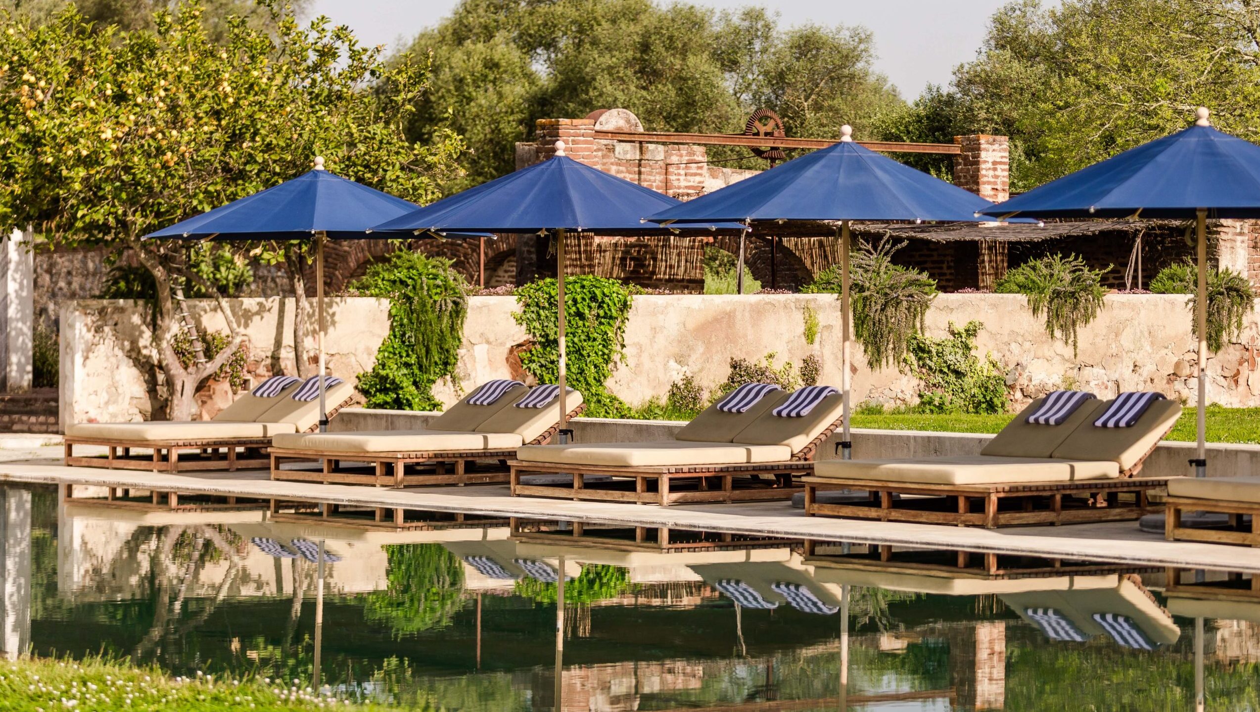 Located in Alentejo, Portugal, in the foothills of the medieval Monsaraz and very close to the big lake Alqueva, São Lourenço do Barrocal is an old farming village (a ‘monte alentejano’), carefully rejuvenated as a luxury hotel, in the midst of centuries-old vineyards, holm oaks and olive trees. Within a 780-hectare estate, owned by the same family for 200 years, it continues to thrive as an agricultural property, producing certified organic cattle, fruits and vegetables, olive oil and wine. It comprises an on-site winery, two farm-to-table restaurants, a farm shop and a spa by the Austrian organic cosmetics brand Susanne Kaufmann. It also has two outdoor pools, orchard, organic garden, stables and riding ring, and a diverse range of activities. Member of “The Leading Hotels of the World”.