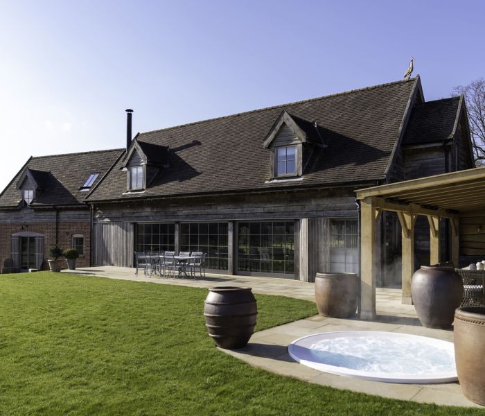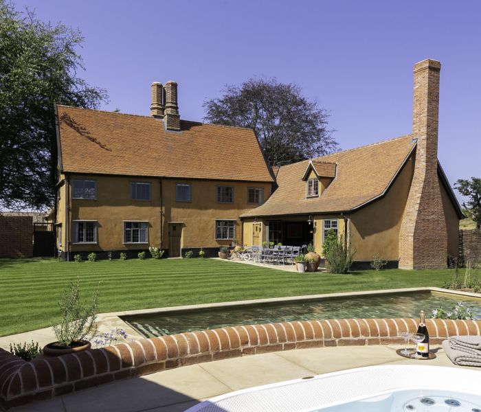 Moat Cottage sleeps up to 12 guests in 6 beautifully designed en-suite bedrooms. One of the bedrooms is located in the summer house with the hot tub on the outdoor deck, over looking the moat.