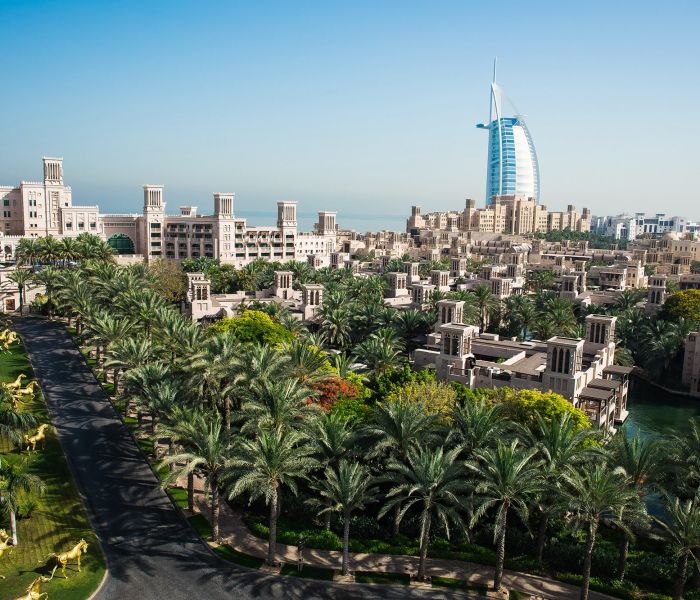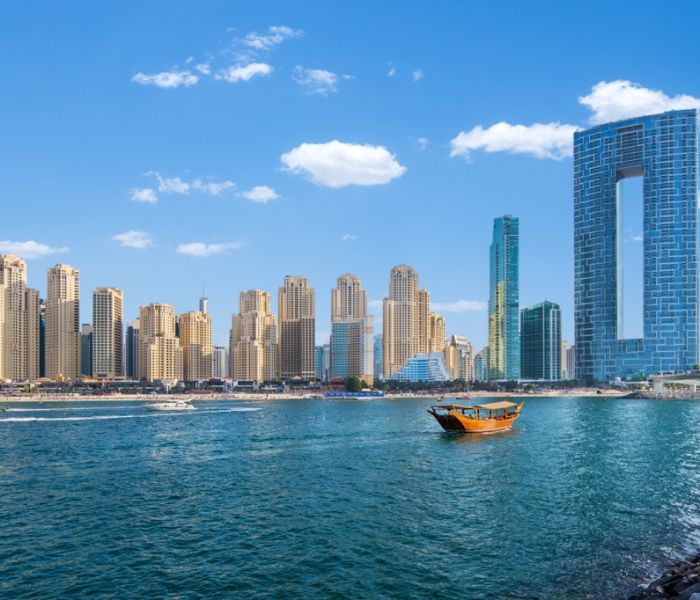 You’ll find a very well-equipped gym, two tennis courts and a very large Spa with a host of Eastern style treatments and therapies. The surrounding area is full of beach clubs and there’s a lot of retail therapy to be had in the Dubai Marina district. To discover the old charms of Dubai, take a dhow around the waterways, or wander through the souks and markets.