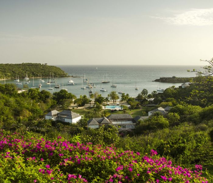 On a stunning horseshoe beach on the south west of Antigua, overlooking tranquil turquoise waters & surrounded by rainforest, just 45 minutes from the airport & a boat ride away from English Harbour.