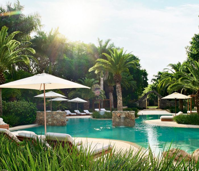 Cool and fresh, decorated with earthy tones and linen drapes, the rooms and suites ooze beach shack sophistication. Standard Rooms are intimate and romantic, with palm covered verandas looking out over the tropical gardens. Each of the Superior Deluxe Suites is different – some come with a garden view and others look out over the ocean – but each comes with a large terrace and plunge pool. For families, the Superior Double Deluxe Suites have two kingsize beds and plenty of living space.