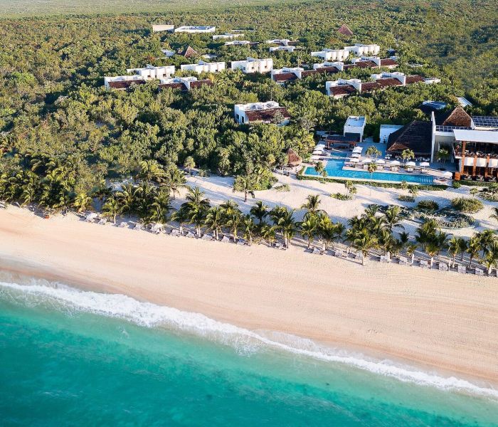 On the protected Baia Punta Soliman, on the Yucatán Peninsula - 10km from Tulum and 120km from Cancun airport.