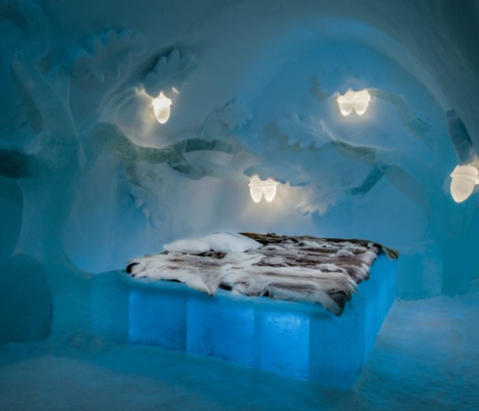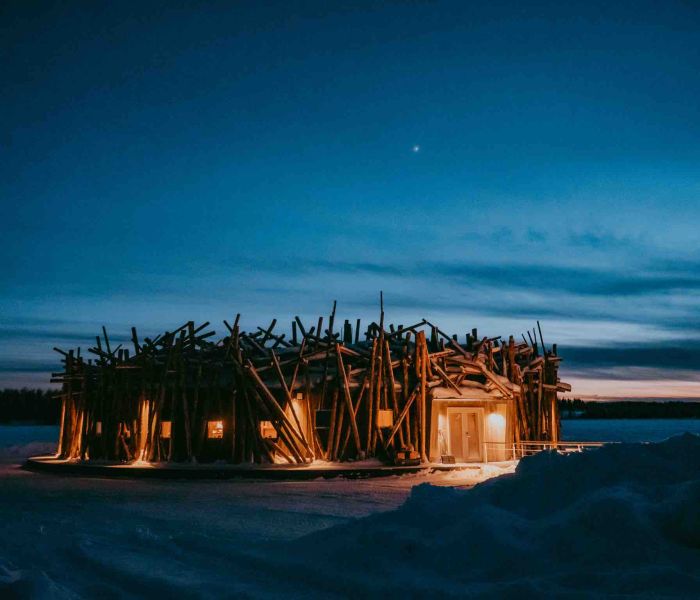 Near the village of Harads, just below the Arctic Circle in Swedish Lapland. One hour 20 minute private transfer from Luleå airport (Stockholm to Luleå by plane is 1 hour 20 minutes).