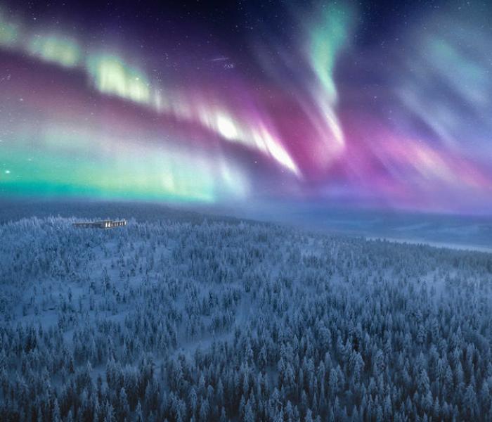 In the mountains and forests of Finland, on the borders of the Phyä-Luosto National Park, Northern Lights Village enjoys some of the country’s most magnificent landscape. Created by husband and wife team, Markku and Susanna Inkilä, with backgrounds in Northern Lights photography, design and planning, it’s promises adventure and luxury, at the same time as showcasing Lapland’s wild beauty.