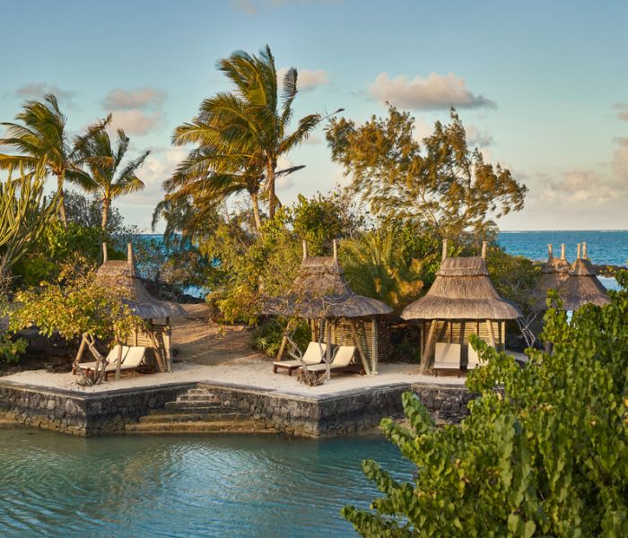 On the sugary white beach of Quatre Coco, on the east of the island.Rooms: