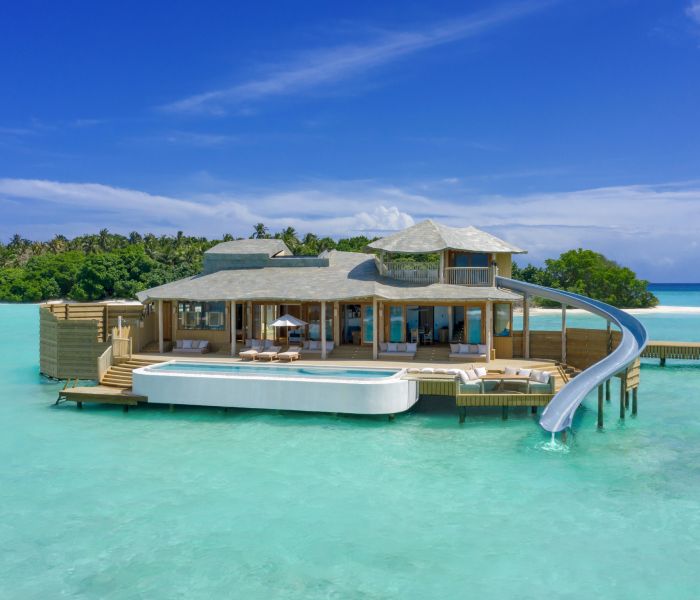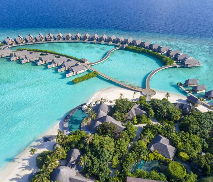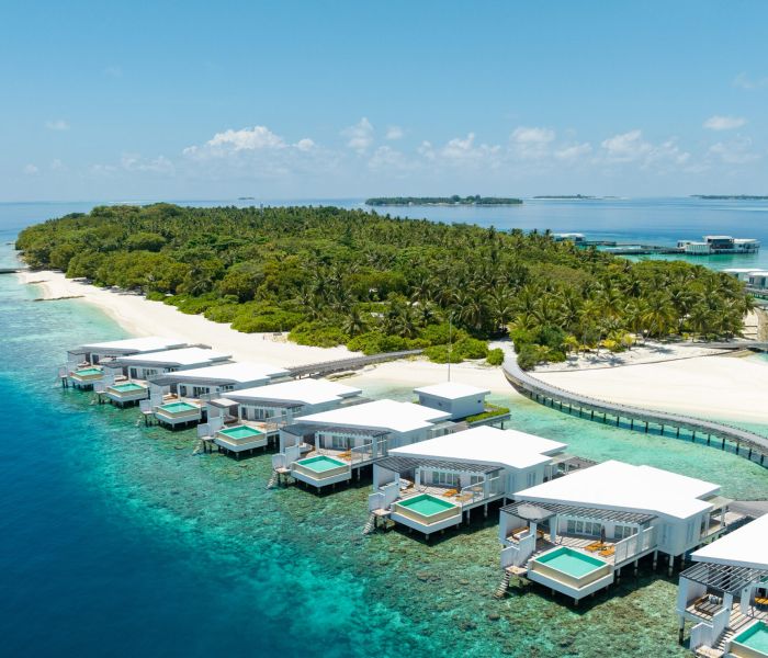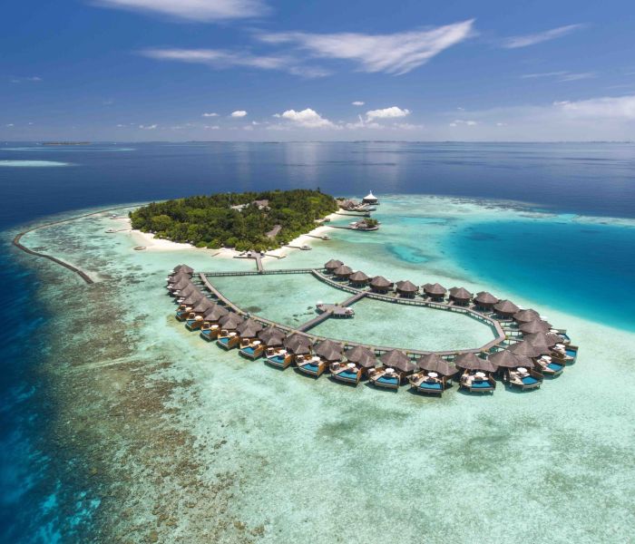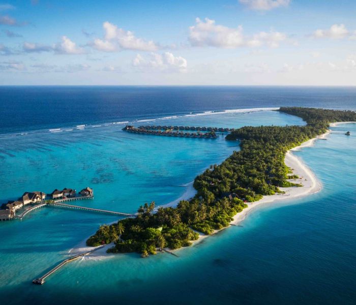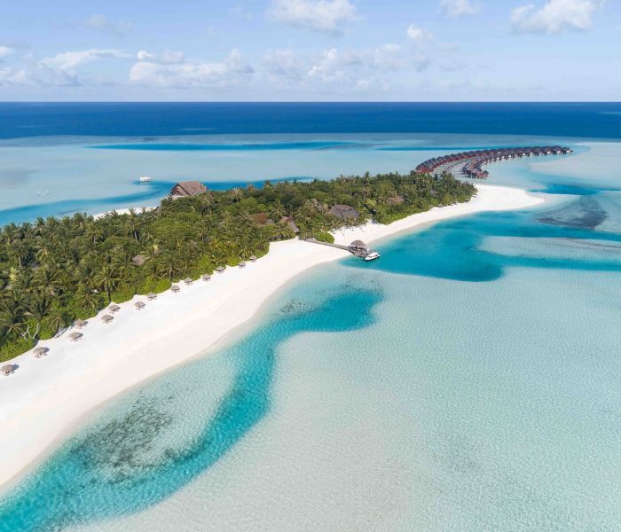 150 miles south of Malé, on the Laamu Atoll – 35 minutes from international airport via a domestic flight & a 15-minute speedboat ride.