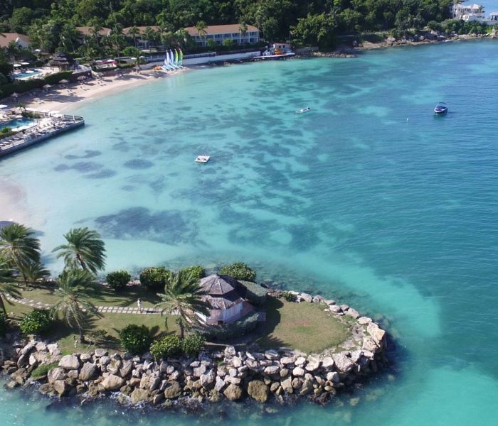 In the hotel pool or in the emerald blue waters from the secluded sandy beach.Children: