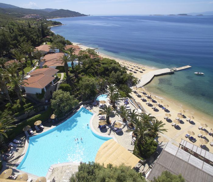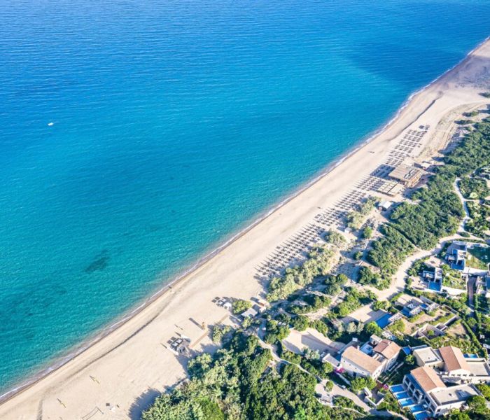 Its low-rise architecture and authentic design fit naturally into the surroundings, creating a village feel, with cobbled streets, tavernas and large open spaces filled with olive groves. All of this and just steps away from a crescent-shaped bay and a golden beach by the Ionian Sea. The facilities are first class, with something for every member of the family, and the vast choice of restaurants will keep gourmets very happy indeed. A stay here most definitely feels like a lifestyle rather than a holiday.