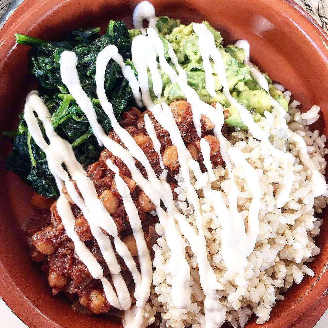 7pm – Dinner would normally last an hour – consisting of a small bowl of soup to start; anyone else love eating out of miniature colourful Oliver Bonas style crockery?! Followed by some sort of goodness for main — for example, a vegan burrito bowl — a blend of chickpeas, onions and tomatoes (and a hint of raw cacao), with brown rice, guacamole, and cashew cream.