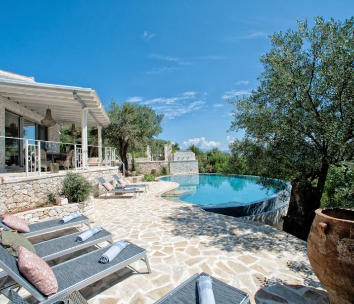 Cool covered terraces are perfect places to eat and unwind with open terraces bordering the infinity pool. If you can bear to leave the villa, the sandy beach at Kalamaki Bay is minutes away with delicious tavernas and bars in the nearby villages of Kassiopi and Perithia. For larger groups, Jacaranda can be hired in conjunction with the adjacent three-bedroom villa, Mimosa, which sleeps up to six guests. The villas are connected via an arched wooden door in the garden.