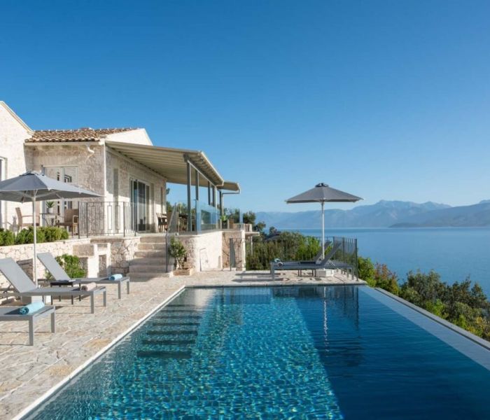 With uninterrupted views across olive trees to the Ionian channel, Jacaranda House is beautifully sited on the landscaped grounds of the Kardaki Estate on Corfu’s North East Coast. Sleeping up to eight guests, the house is laid out over two floors with each en suite bedroom opening out onto a sea-view terrace. The elegant, airy interiors are finished with pretty, quirky hand-picked fabrics and traditional elements sit comfortably alongside sleek contemporary finishes for a truly relaxed and enjoyable experience.