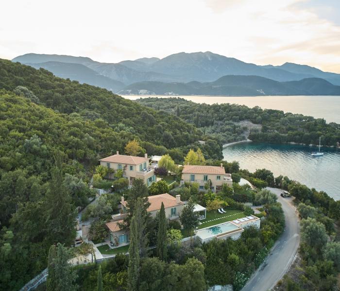 Located on the same estate as Villa Helena and Villa Eugenia on the North-West of the island Meganisi, amidst lush vegetation and shaded trees.